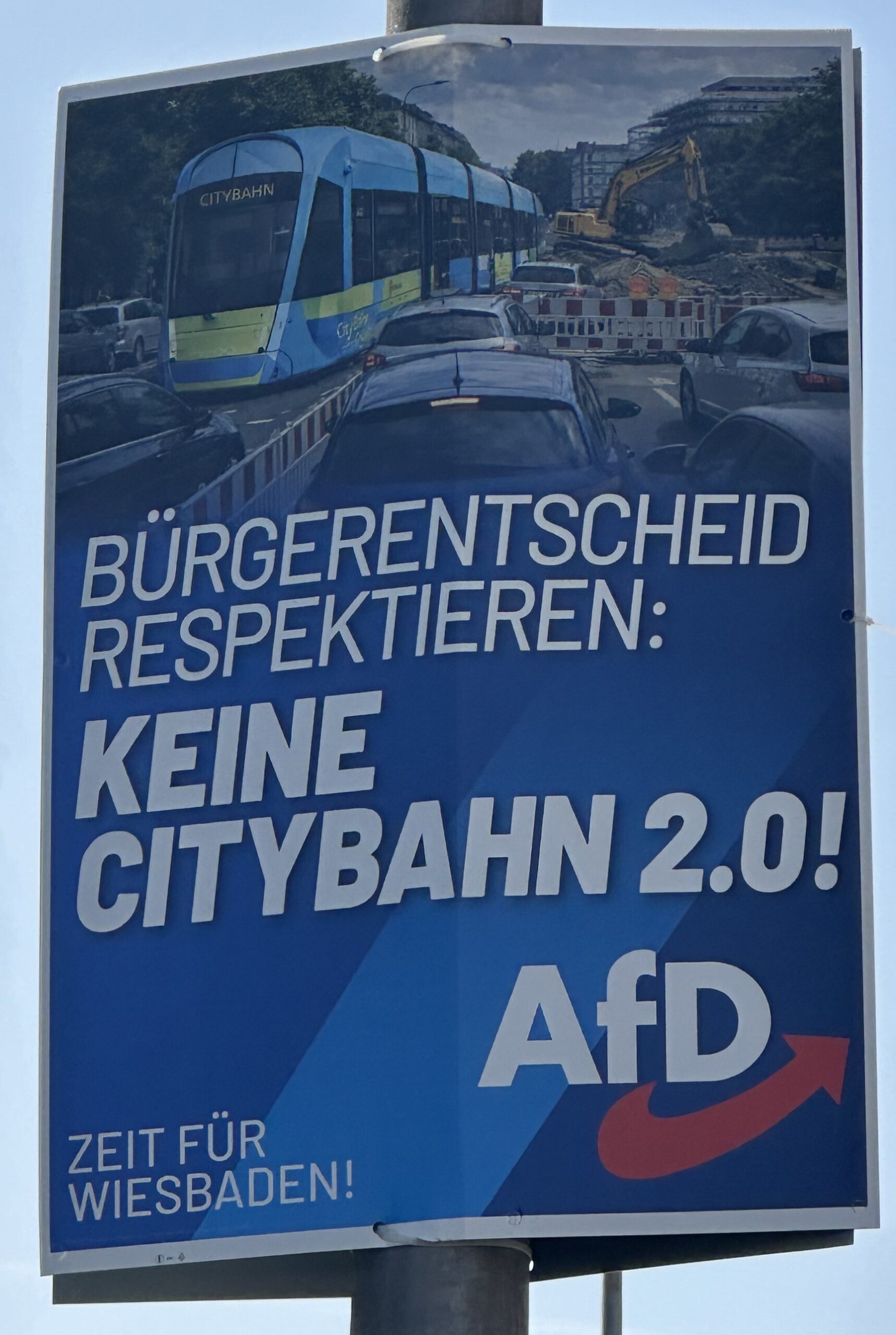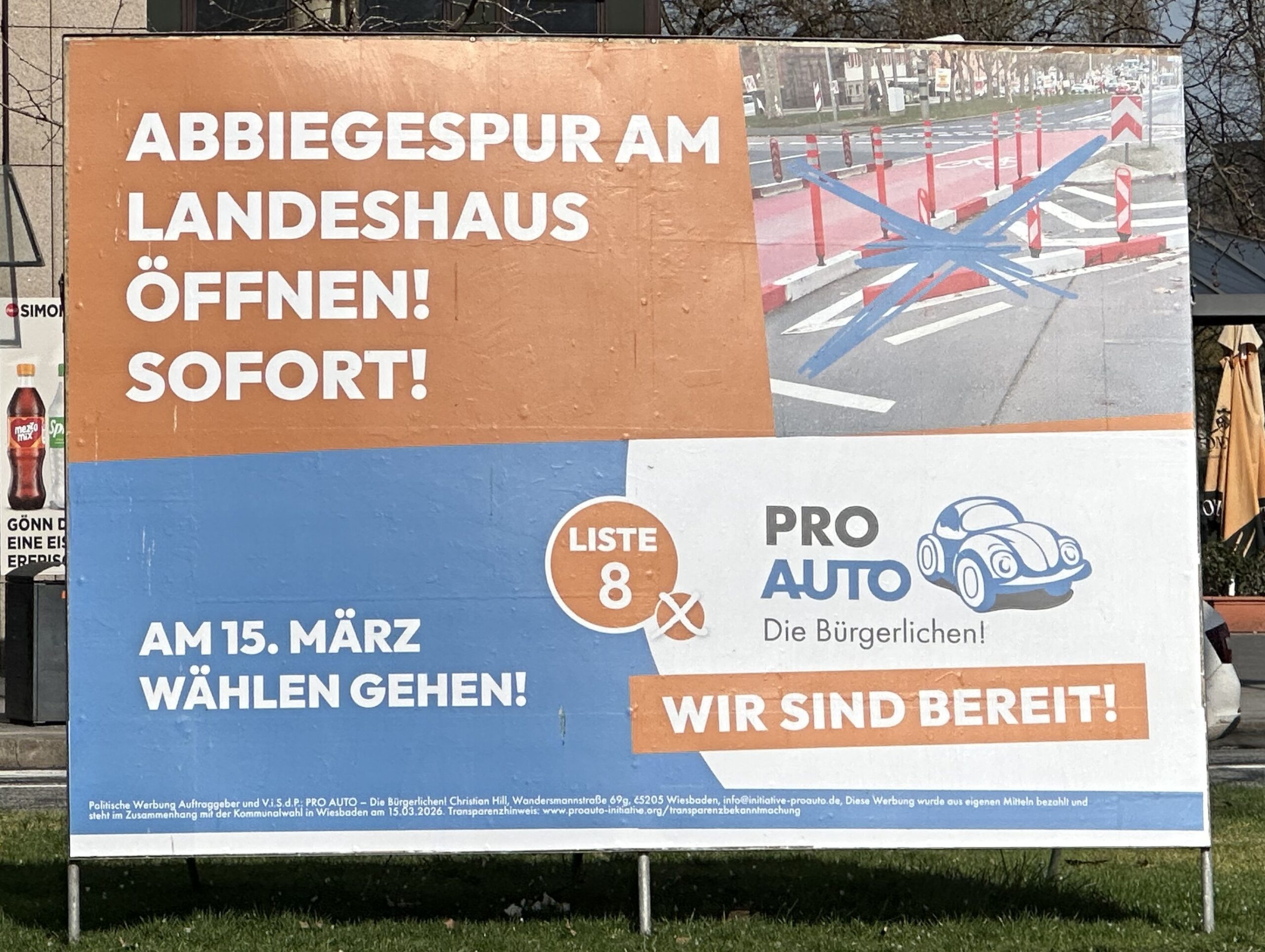 Wiesbaden braucht keine Wahlversprechen, die wissenschaftliche Fakten/Erkenntnisse ignorieren, auf Populismus setzen und letztlich leere Versprechungen machen. Wir brauchen eine sachliche Debatte darüber, wie der knappe Raum zwischen Fußgänger-, Radwegen, Busspuren, dem fahrenden und dem parkenden Auto fair verteilt wird.