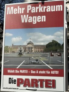 „Die PARTEI“ konterkariert die Debatte brillant und entlarvt die Absurdität der Forderungen nach immer mehr Asphalt. Ob das Bowling Green als Parkplatz oder „Citybahn 3.0“ diese Satire trifft den Kern:
